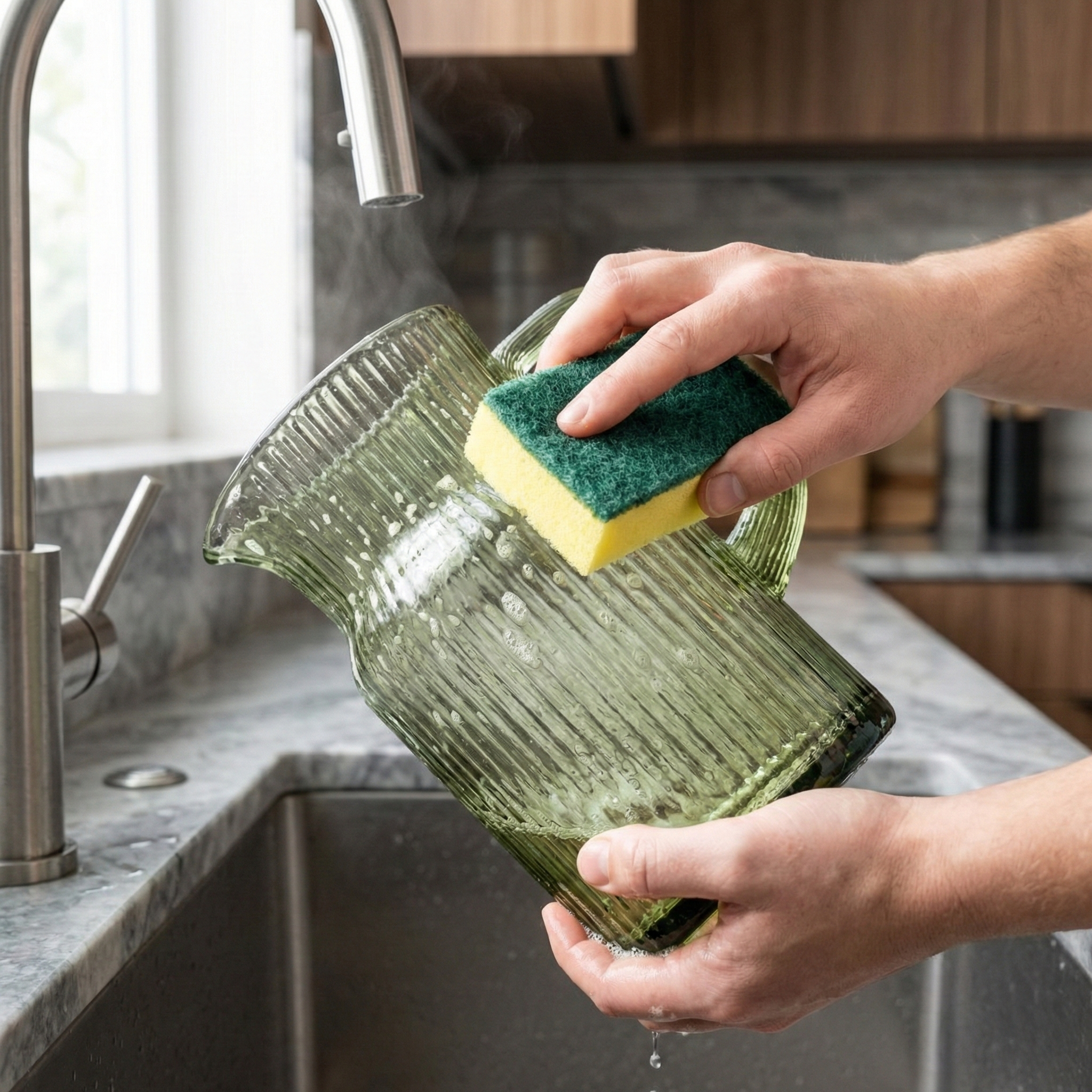 Nejlepší způsob, jak sklo umývat, je ručně a vlažnou vodou. Vyhněte se horké vodě nebo náhlým změnám teplot – ty můžou způsobit, že sklo praskne.